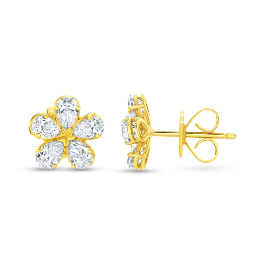 Titanium Flower Stud Earrings in 18k Gold with Diamonds
