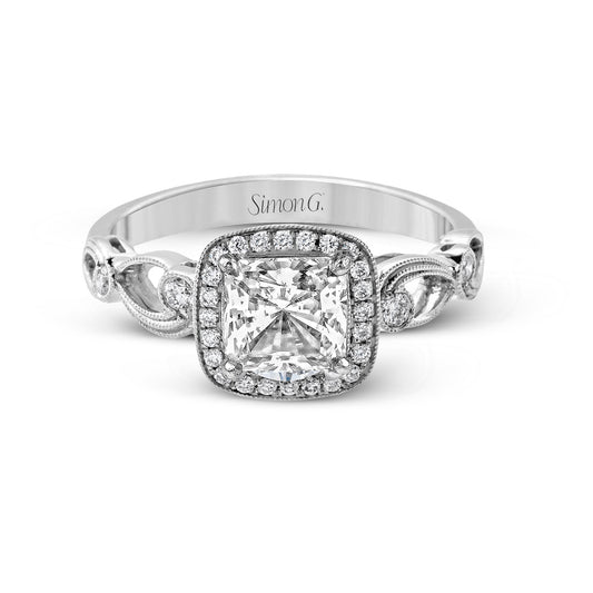 Princess-Cut Halo Engagement Ring In 18k Gold With Diamonds