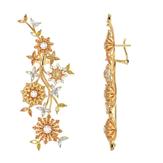 Garden Drop Earrings in 18k Gold with Diamonds & Sapphires