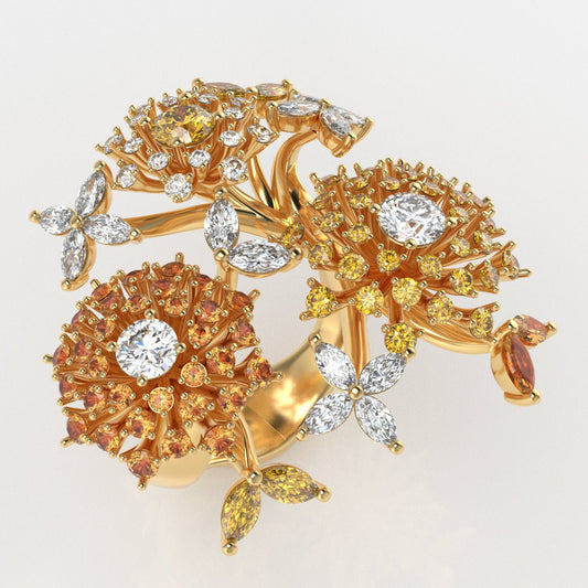 Garden Fashion Ring in 18k Gold with Diamonds & Sapphires