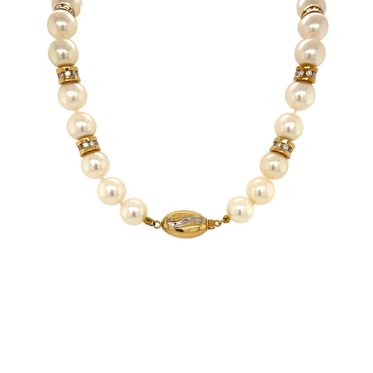Diamond Roundels & Pearl Necklace in 14K Yellow Gold