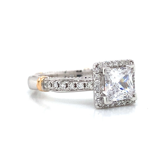 Verragio Square Halo Pave Engagement Ring in 18K White & Rose Gold