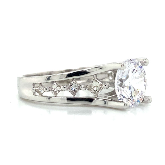 Side Stone Graduating Floating Set Engagement Ring in 18K White Gold