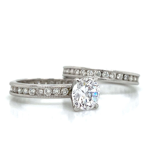 Pave Tapered Shank Bridal Set in 18K White Gold