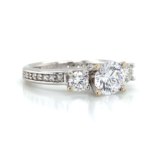 Three Stone Round & Pave Set Engagement Ring in 18K White Gold