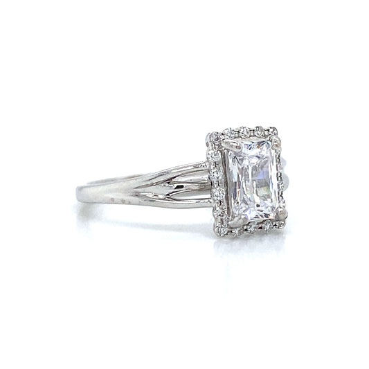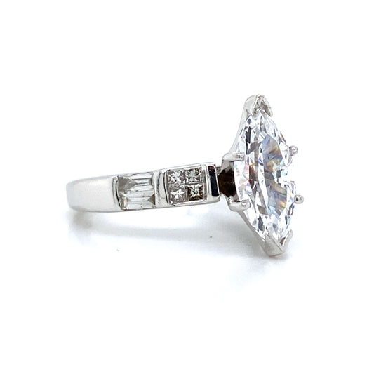 Side Stone Princess & Baguette Set Engagement Ring in 14K White Gold