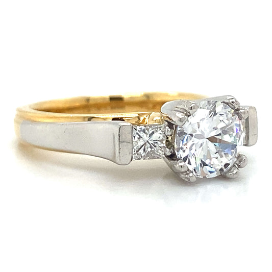 Three Stone Princess Shaped Engagement Ring in Platinum & 18K Yellow Gold