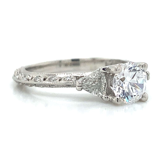 Tacori Three Stone Trillion & Pave Set Engagement Ring in Platinum