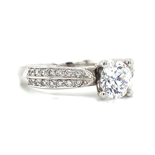 Side Stone Pave Engraved Engagement Ring in 18K White Gold