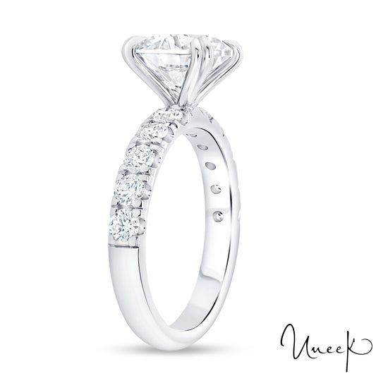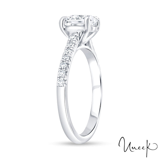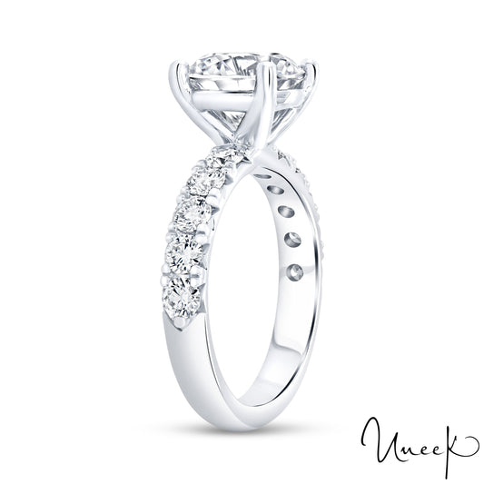 Uneek Solitaire Round Shaped Engagement Ring 14K White Gold R018U