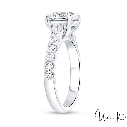 Uneek Straight Round Shaped Engagement Ring 18K White Gold R1006RB-250