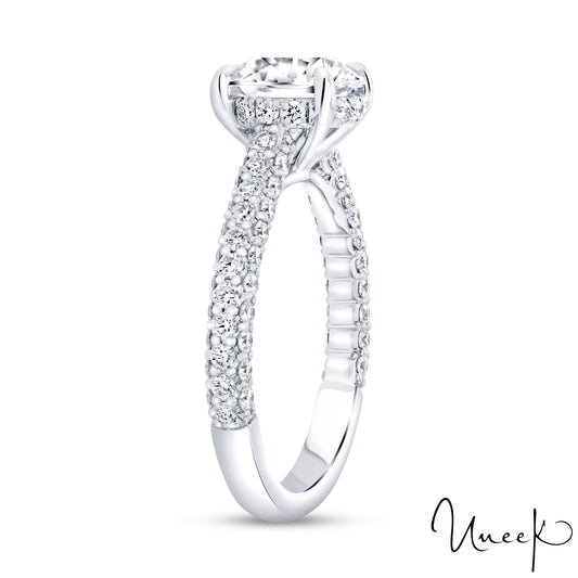 Uneek Straight Round Shaped Engagement Ring 18K White Gold R1004RB-300