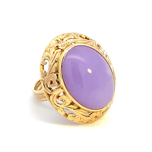 Natural Lavender Jade Ring in 14K Yellow Gold