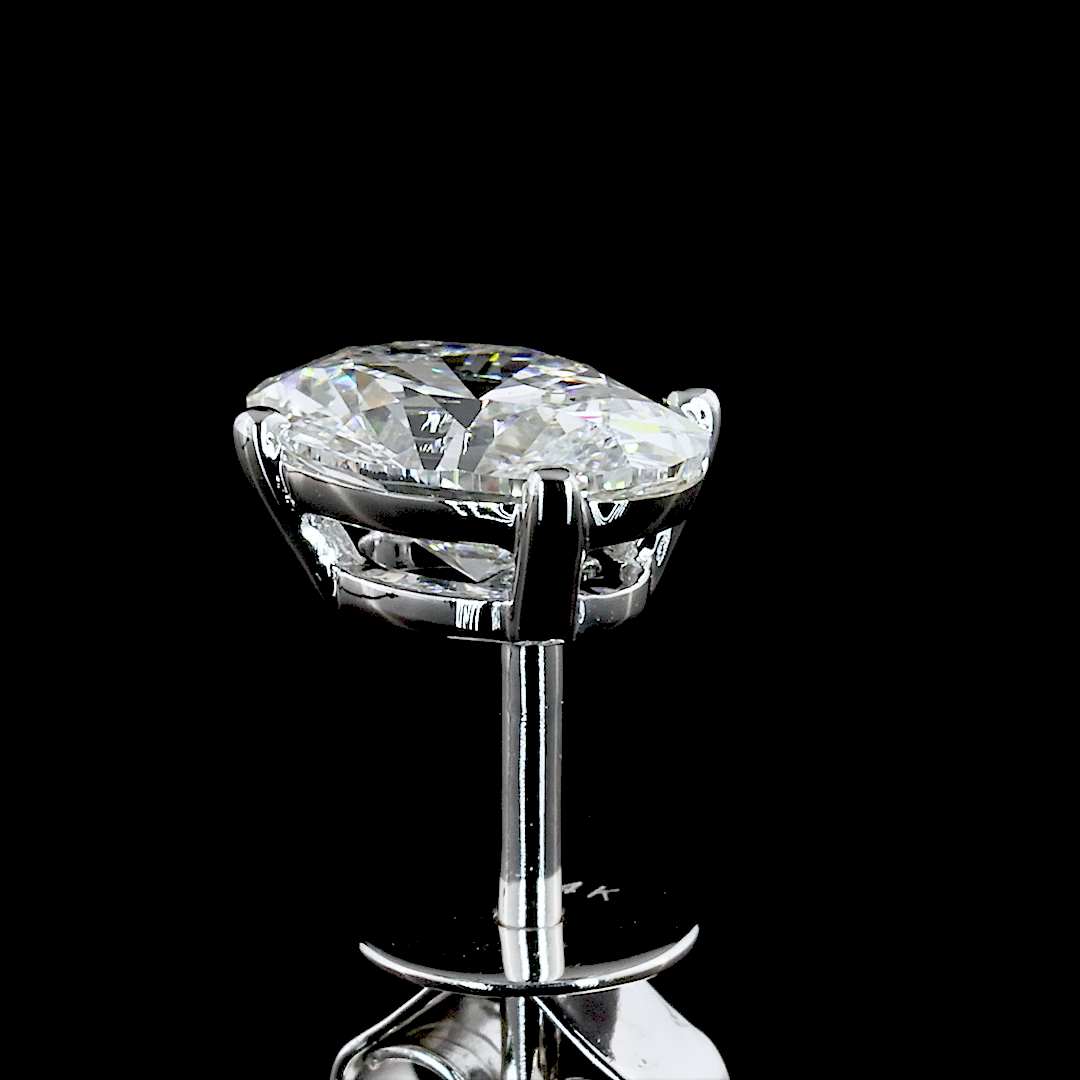 This stunning Studs Earring, crafted in 14K White Gold, features a Prong setting, with Oval shaped diamonds, totaling 1.42 carats across 2 stones, The diamonds are graded E-F in color and VS2 in clarity.