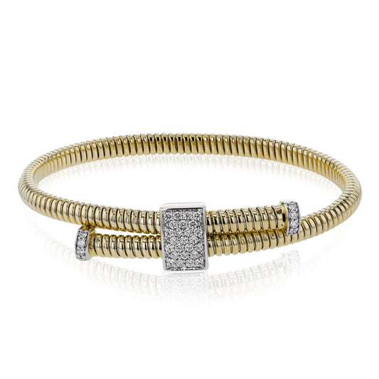 This beautiful bangle features a distinctive design that dazzles with brilliant diamond ends and a sparkling bar.