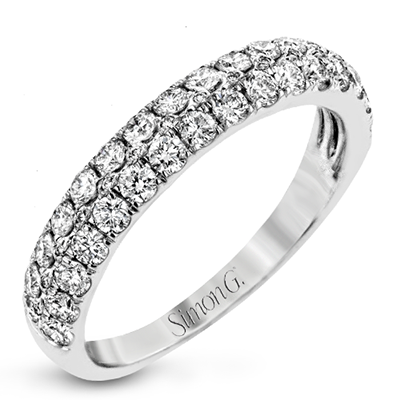 This stunning ring features 1.00 ctw of sparkling diamonds set in two rows that run along half of the band.