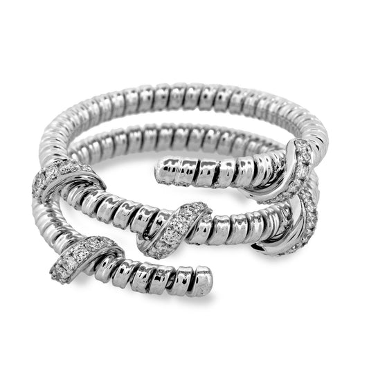 This eye-catching ring features a spiral design set with glittering diamonds.