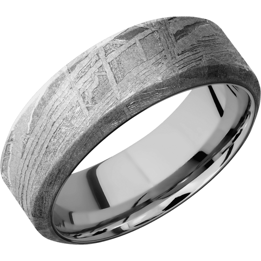 8 mm wide High Bevel Meteorite band featuring a Titanium sleeve.