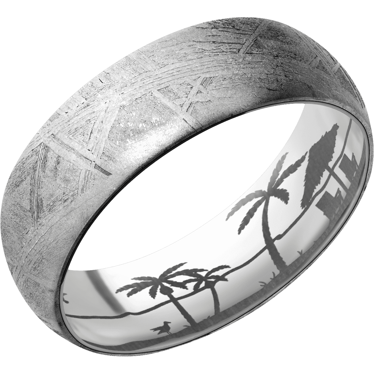 7 mm wide Domed Meteorite band featuring a Titanium sleeve.