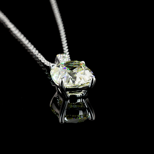 This stunning Pendant Pendant, crafted in 14K White Gold, features a Prong setting, with Antique Cushion shaped diamonds, totaling 2.12 carats across 5 stones, The diamonds are graded I-J in color and VS2 in clarity.