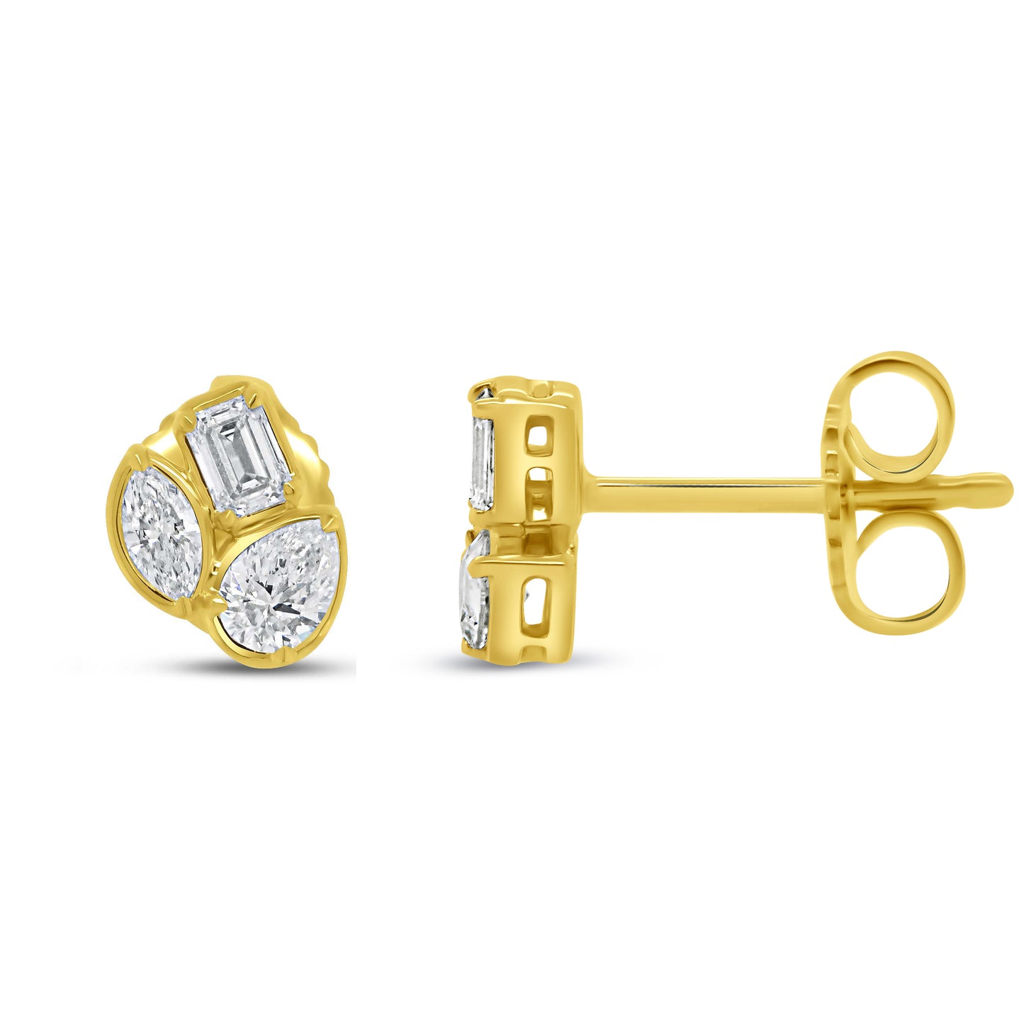 This alexandria collection bezel stud earrings is faultless for every day wear. Crafted with 2 pear shaped diamonds weighing 0.26 carats, 2 marquise diamonds with a total weight of 0.13 carats, and 2 emerald cut diamonds with a combined weight of 0.19 carats in an enchanting finish.
