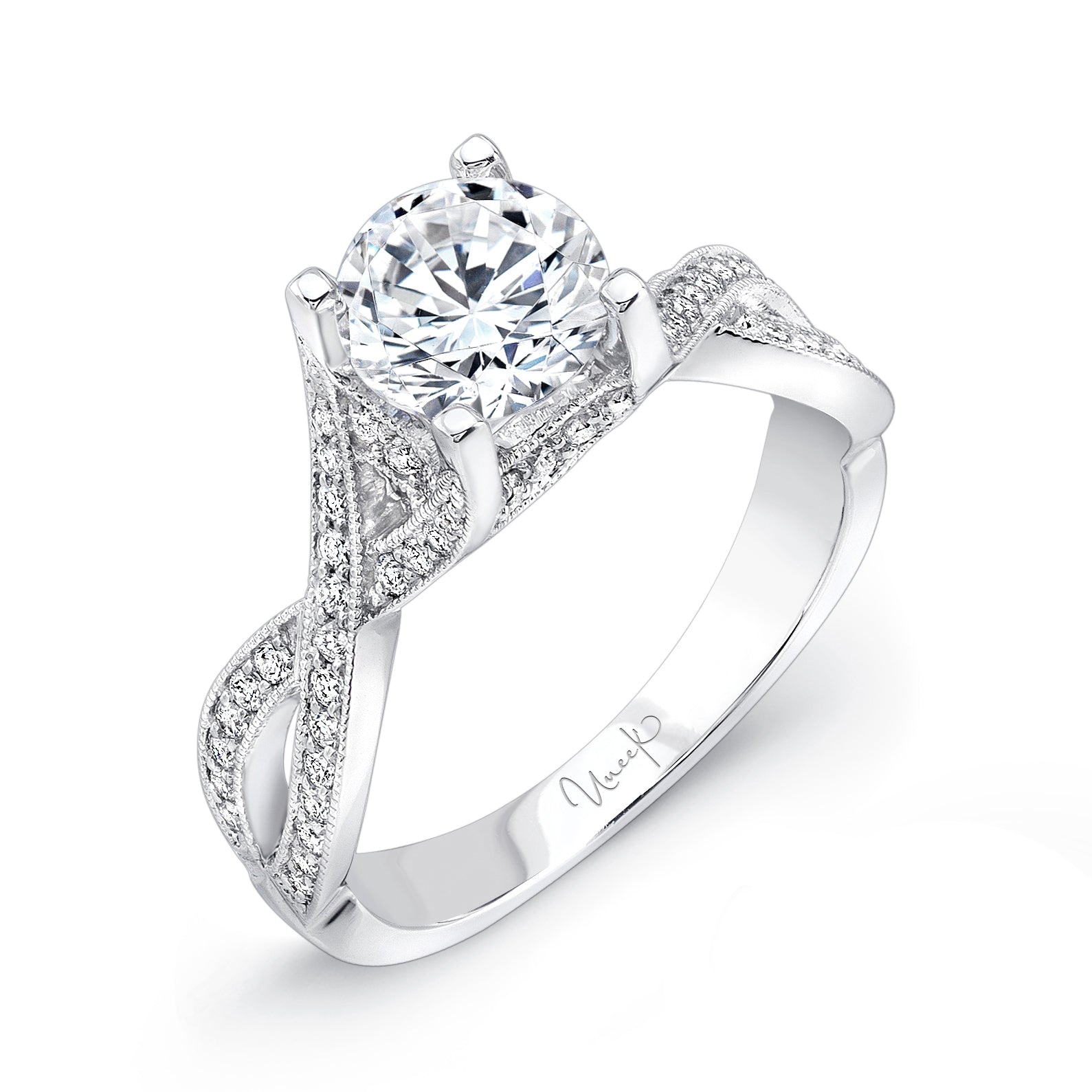 Uneek Engagement Ring 14K White Gold Round SWS107